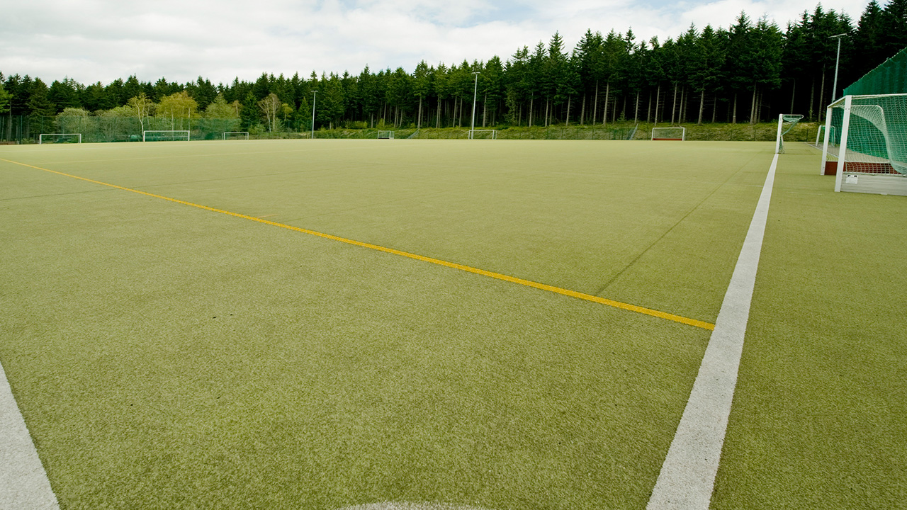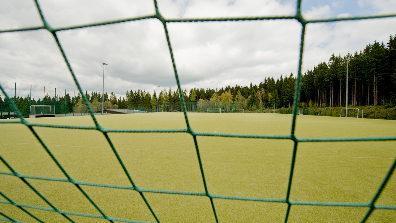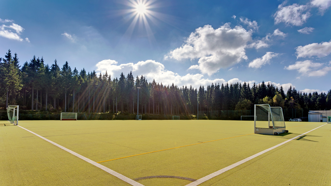 Unser kleiner, besandeter Kunstrasenplatz ist gut geeignet für Fußball und Tennis, der große Kunstrasenplatz ist bewässerbar und damitspeziell für Hockey gedacht. Fußball ist hier natürlich auch möglich.